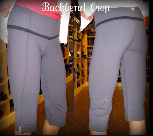 The Backbend crops are made with a really nice dense feeling luon that reminds me of my Wunder Groove Crops that have stayed like new since last year. I haven’t seen luon like my wunder grooves since then but the weave has a really great feel and if I were looking for crops to use at the gym I would get the Backbend crops soley for that reason.