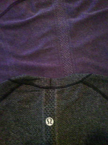 I posted my Upload Thursday Eve post earlier this morning but I thought I’d give you a refresher of what we’ve seen since Monday and may possibly see uploaded tomorrow. We haven’t seen any facebook or product notification images of the newest Resolution LS in Aruba and Heathered Very Violet or Scubas in Heathered Aruba yet but a fan did post to facebook her new Resolution LS in Aruba. I’m getting (hopefully) the Black Run Swiftly Tech LS and the In Stride in Light Grey Pique. Lulu Addict has posted a picture of a Purple Crush LS Swiftly with Grey sleeves and a pretty orange contrast raglan seam and I really like that one too but I think I prefer the Black. I plan on layering it over my Rubber Ducky Cool Racerback or possibly an Aruba Cool Racerback.