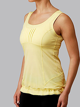 My new Rubber Ducky Cool Racerback Tank arrived today and I must say I really, really like the color. I had a moment this afternoon when I saw the same tank in store and I thought I really didn’t love the shade of yellow as it’s not as creamy as it looks in the website photo and I was hoping for a buttery soft yellow. Even when it arrived I thought for sure it would go back without even trying it on but my husband for some reason wanted to see what I got (perhaps to make sure it was a smaller purchase) so I tried it on and it looked really good with my skin tone. I really liked it under my Power Purple Hustle Jacket and my Power Purple Micro Stripe Cool Racerback. It’s a bit of a bright easter egg contrast with Power Purple but somehow it worked. It’s hard to describe the yellow because it is quite a lot softer then Mac N Cheese but brighter then Chirp. Chirp by comparison looks quite washed out and sad. Maybe it’s more of a lemony yellow. None the less, it’s flattering to me and I have trouble pulling of most yellows so I’m happy that this one worked out and I’m keeping it. One thing to note though is that this Cool Racerback is a touch see through like white luon so you will likely need to insert cups in whatever bra your wearing for some modesty. I haven’t been using my cup inserts very often lately but I did need to use them with this one.