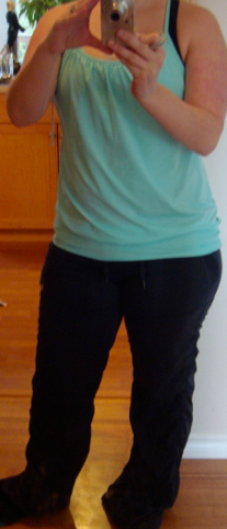 I’ve decided to return both No Limit Tanks despite the fact that I really like Aruba and I also really like the Light Grey Pique. The tank, although very comfortable is just not working on my figure. I have a narrow waist and larger hips so when I wear a tank like this that hides my narrow waist I just look short, stocky and wider. Now I’ll just hope for a more flattering Heathered Aruba tank to come my way.