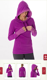 I just purchased this very gorgeous Run: Post Pullover in Very Violet size 8 and I am in love! It was also available in all Black, all Coal, or Wish Blue. I’m still on the hunt for the Fuzzy Fleece from last winter (pictured on the right menu) because I think that one is different enough and I love the fleece enough that I can make room for both. But Very Violet in fleece is yummmmmy! I was impressed that the price was just $88 so I got some money back when I exchanged my Dash Pullover. If these come out in more colors I’ll be all over them like a fat kid on smarties.