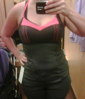 Happy Heat tank ($52) in size 10, Persimmons and Coal. Cute, has adjustable straps that you can wear crossed or not crossed, moderate support with a built in bra. This Persimmons and Coal was the prettiest combination that jumped out at me I liked the gathering at the sides and the bottom is quite roomy around the belly but because of the gathers + luxtreme it pulls it in close to the belly showing all your ugglies (as seen bellow, it does not hide mummy tummy). Although I found this a cute tank I don’t have a need for a tank right now and wasn’t ‘in love’ with it.