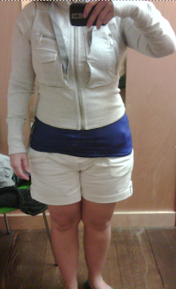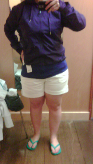 I also fell in love with this pretty Stride. Maybe that’s why I was so good today…too many things I could have walked away with that it was easier to not pick. Anyways, this combination of Senorita Pink and Static Charcoal is so hot. I must get something in this combination, I’m just not sure what yet. This is the size 8 on me and as you can see it doesn’t look too small. The 10 has way too much room in the arms and chest. As I was leaving the store today I was longing for some new decent pima somethings in pretty colors. I don’t care if they want to call it the Modern or the 5yr v neck or crew necks or whatever but if they can make them one color I would be very happy to have one in Wish, Senorita, Lolo and Pig Pink. No color blocking please.