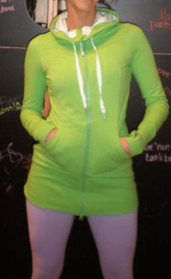 Two way zippers and four way stretch. I lived in my lulu pants (Be Still II and Lulu I and Lulu II) and I lived in Pima cotton t-shirts, tanks and an open Remix hoodie through the winter. But I never ever considered the possibility of one of the luon jackets with the two way zips. Too bad because this looks so cute showing of a lovely belly.